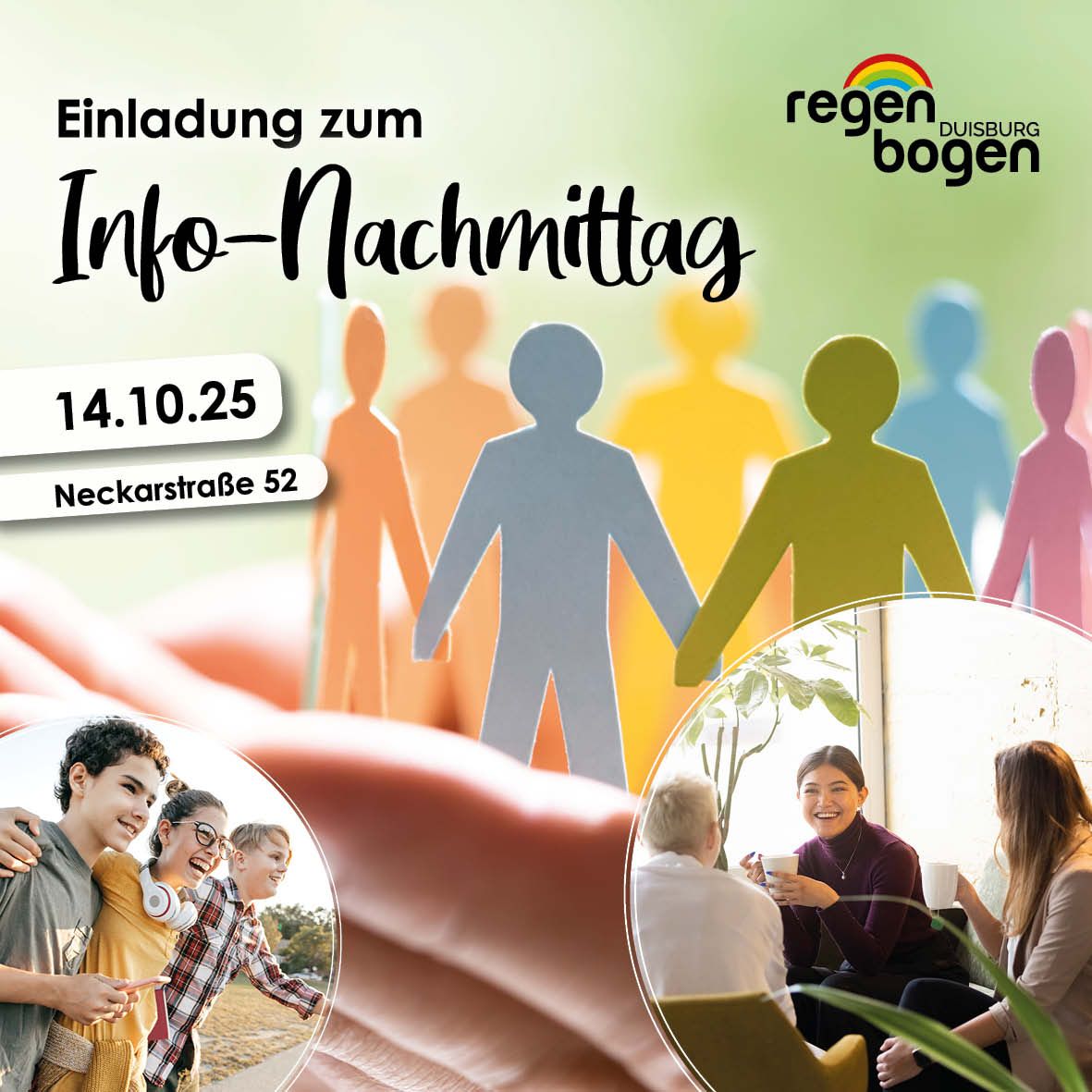 Die Veranstaltungen richten sich an alle, die mehr über unsere Arbeit erfahren möchten – ob potenzielle Nutzerinnen und Nutzer, Angehörige, Kooperationspartner*innen oder Interessierte aus dem Stadtteil. Kommt vorbei, hört zu, informiert euch und gestaltet mit, wie Regenbogen Duisburg euch unterstützen kann!
